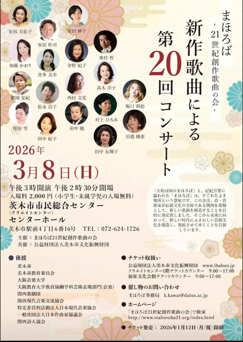 2026年3月8日 第20回コンサートのお知らせ